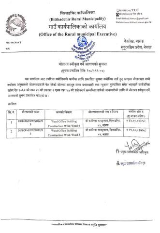 बोलपत्र स्वीकृत गर्ने आशयको सूचना!